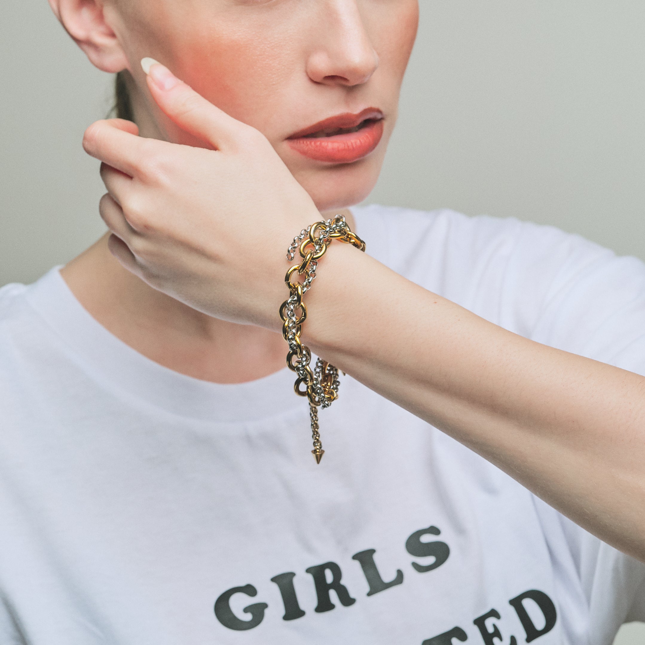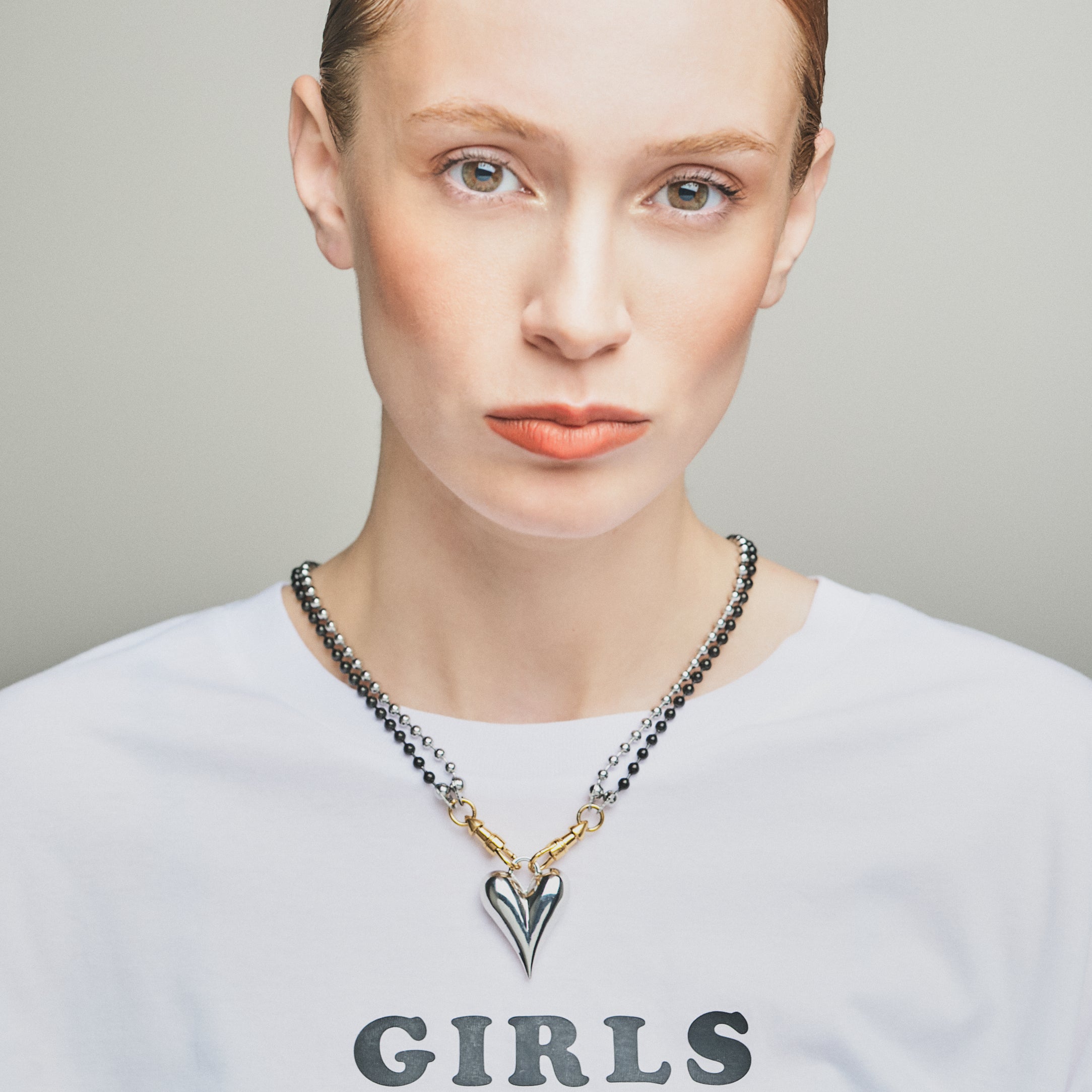 Esta colección fusiona la herencia punk con el refinamiento contemporáneo de Kirei: cadenas con carácter, perlas inesperadas, relieves metálicos y destellos helados que evocan la energía de la noche urbana.