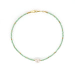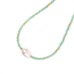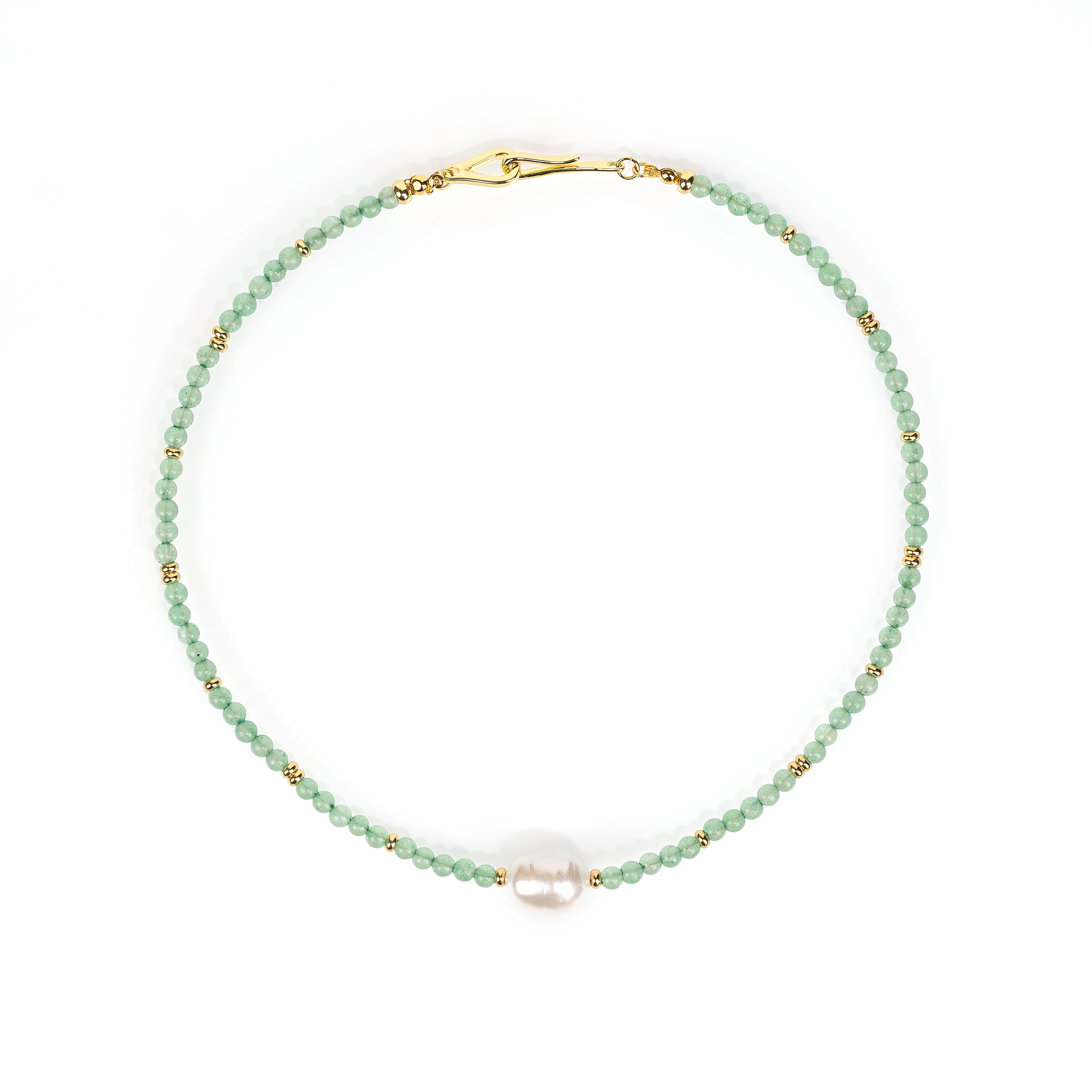 El Collar Zahara combina simplicidad y carácter. Enfilado a mano con cuentas de aventurina verde y detalles dorados, esta pieza encuentra su centro en una perla de concha electrochapada, con brillo suave y orgánico. Un diseño fresco y delicado que transmite equilibrio y autenticidad.